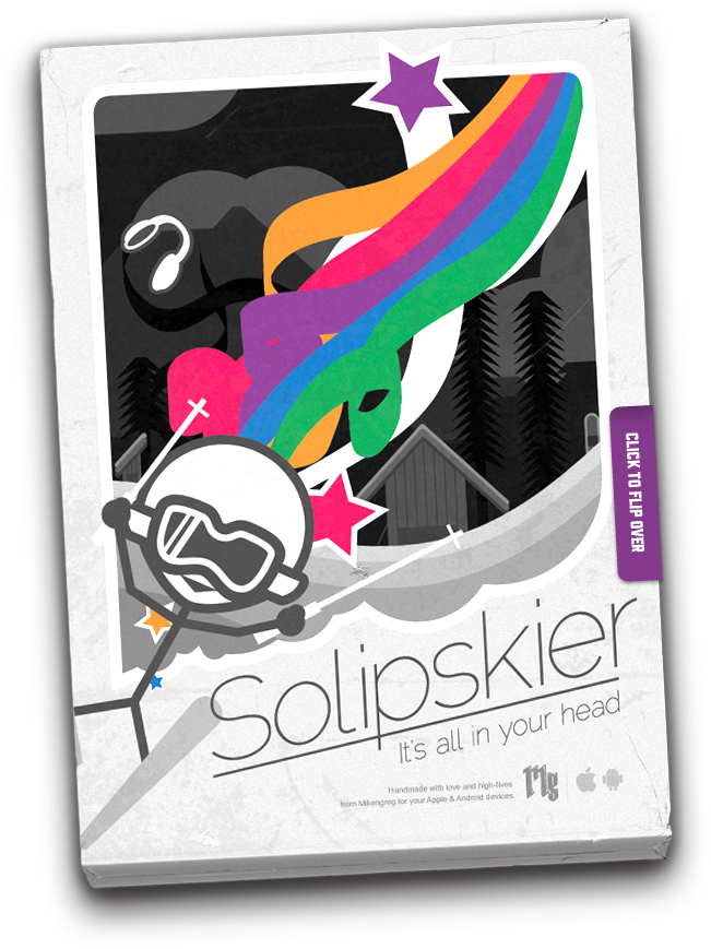 Today for Free Stuff we give you Solipskier. The game consists of you guiding a skier, trying to reach certain gates as fast as possible (at the highest speed possible). You can get higher scores by making the skier go airborne while passing the gates.